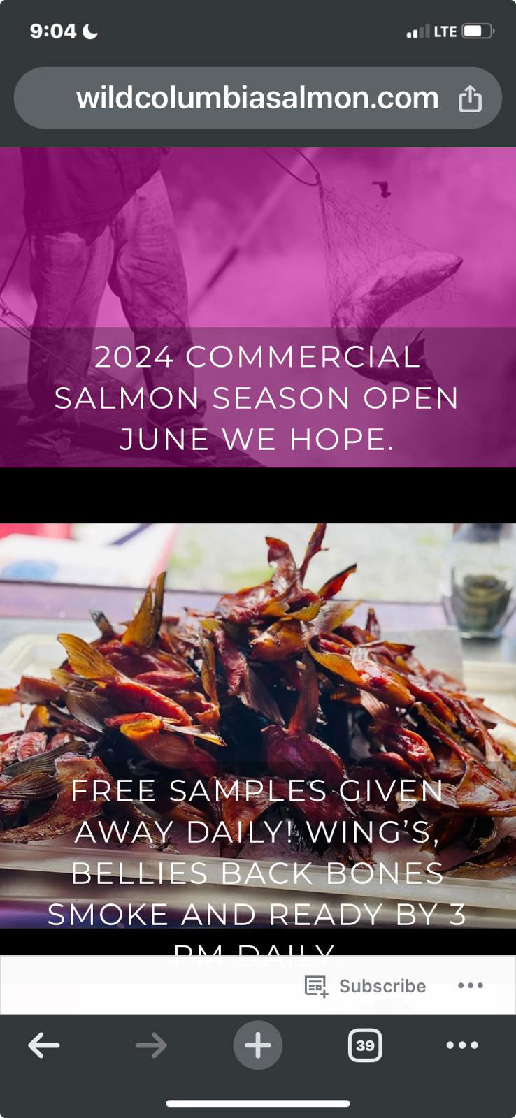 Negocios indígenas americanos. Efectivo y propinas a diario, de 10:00 a. m. a 6:00 p. m., todos los días. www.wildcolumbiasalmon.com