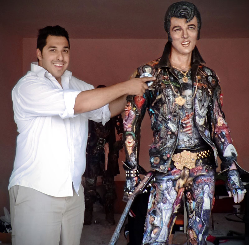 Mateo Blanco con la escultura de Elvis Presly