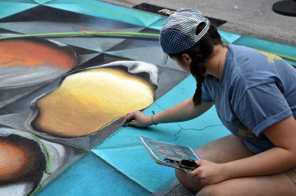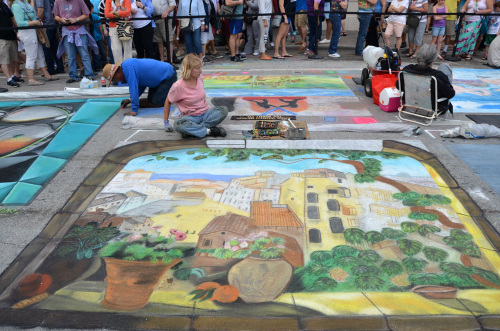 Traced back to 16th century italy when itinerant artists would use their chalks to transform pavement into a makeshift canvas, street painting has retained its appeal through the centuries. As in ages past, crowds still gather to watch as fine works of art emerge. The “paintings” last only until the next rain, but the lively spirit and accessibility of the exhibition captivates new audiences each year and inspires lasting memories.